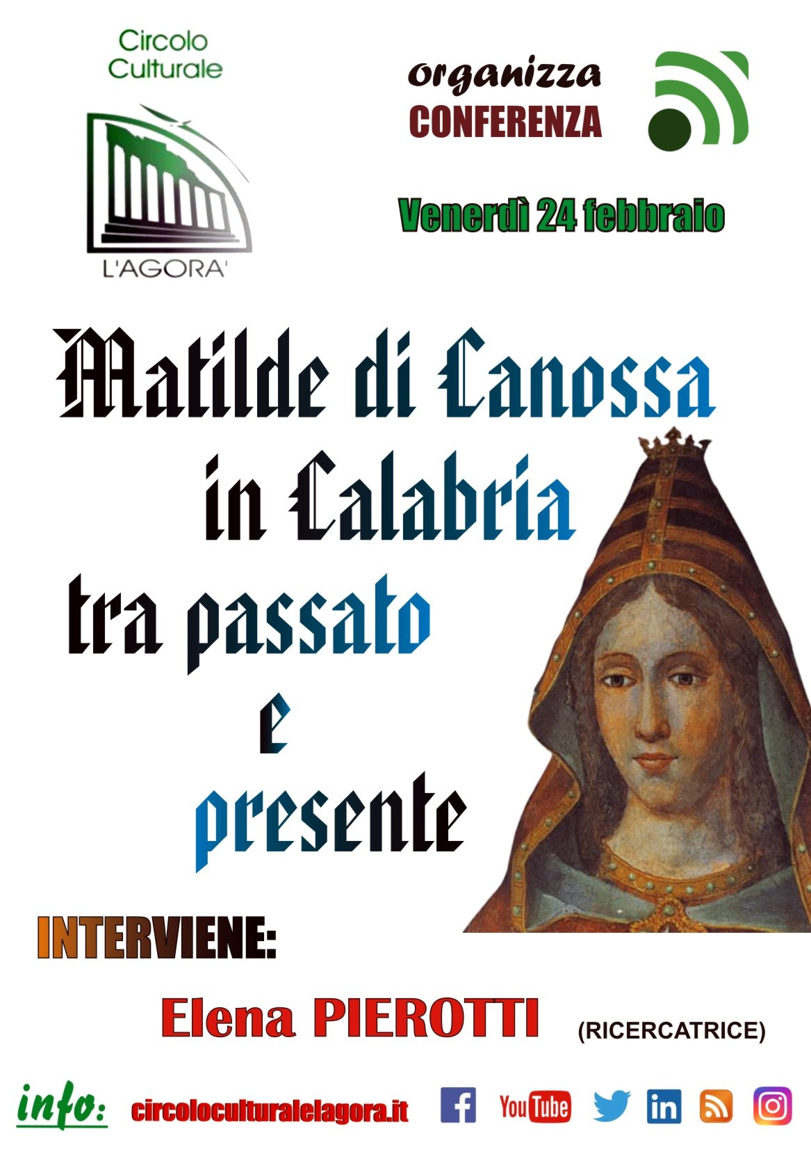 “Matilde di Canossa in Calabria tra Passato e Presente” è stato il titolo della conversazione organizzata dal Circolo Culturale “L’Agorà”, alla quale ha partecipato, in qualità di relatore, la ricercatrice toscana Elena Pierotti. La studiosa lucchese, presente in diversi incontri organizzati dal sodalizio culturale reggino, nel corso del suo intervento, ha posto la sua attenzione ad una conferenza organizzata proprio dal Circolo Culturale “L’Agorà” tenutasi a Reggio Calabria il 5 marzo del 1998 sul tema “I Normanni e la conquista della Calabria”. Alcuni studi che ho condotto su Matilde di Canossa ed i suoi feudatari – afferma la gradita ospite del sodalizio organizzatore reggino - mi riporta necessariamente alle osservazioni prodotte dal Circolo Culturale “L’Agorà” proprio sui rapporti con i normanni. Il Circolo culturale fece riferimenti importanti a Boemondo d’Altavilla e a Dagoberto, vescovo di Pisa, che collaborarono. Boemondo fu una pietra miliare della prima crociata, eppure il personaggio è davvero poco seguito. Da queste premesse introduttive, la gradita ospite del Circolo Culturale “L’Agorà” ha poi affrontato il tema della giornata di studi in argomento. Matilde di Canossa, tra le donne più influenti del Medioevo, giocò un ruolo centrale nello scontro tra il papa e l’imperatore durante la cosiddetta lotta per le investiture. La vicenda del conflitto tra papato e impero si protrasse a lungo e Matilde partecipò alle alterne fortune di questa lotta assurgendo a protagonista dei grandi fatti storici del suo tempo. Matilde visse dal 1046 al 1115 e regnò su Lombardia, Emilia, Toscana, Umbria ed in altre zone della Penisola. A Bova vi è un castello che Matilde di Canossa ricevette dal Pontefice Gregorio VII. Il maniero sorge in cima ad uno sperone roccioso e dall’alto domina il borgo di Bova, in Calabria. Al castello sono legate diverse leggende. Sulla cima, scavata in un macigno, è ancora visibile l’orma di piede di una donna. L’orma sarebbe appartenuta secondo una prima leggenda alla Contessa Matilde di Canossa, che aveva ricevuto il castello dal Pontefice Gregorio VII”. Leggenda? Queste alcune delle cifre che sono state oggetto di anali da parte della ricercatrice toscana Elena Pierotti, gradita ospite del sodalizio culturale reggino. Altro punto di contatto tra Matilde di Canossa e la Calabria riguarda alcune vicende che si verificarono intorno all’anno 1070, quando un gruppo di monaci benedettini provenienti dalla Calabria si fermò in una stretta valle fra i boschi delle Ardenne. Le origini dell’importante complesso abbaziale di Orval, vengono menzionate in un saggio dello storico ed accademico francese Robert Fossier dove “Matilde di Canossa, duchessa di Lorena e zia di Goffredo di Buglione, i monaci ottennero il permesso di costruire un'abbazia”. La figura e le gesta di Matilde di Canossa si intrecciano in una fitta rete di storie, misteri e leggende legate non solo all'abbazia di Orval ma anche ai monaci provenienti dalla Calabria. A tal proposito vi è una lettura secondo la quale vi era la presenta di Pietro l’Eremita, che parteciperà alla Prima Crociata e sarà uno dei grandi elettori a "Re di Gerusalemme" di Goffredo di Buglione, nipote di Matilde. Un’altra leggenda riferisce che Matilde di Canossa era andata a cercare conforto presso l’insediamento monasteriale, poiché aveva perso l'unico figlio di otto anni e il marito Goffredo il Gobbo, duca di Lorena, brutalmente ucciso a Vlaaedingen il 22 febbraio del 1076. Un'altra leggenda narra che Matilde di Canossa era andata a cercare consolazione presso alcuni eremiti che si trovavano in quel territorio, poiché aveva perso l'unico figlio e il marito. Indossava un anello d'oro con rubino, regalo del marito nel giorno delle nozze, quando si sedette sul bordo di una fontana e l'anello le cadde nell'acqua. Dopo aver pregato la Vergine per tornare in possesso dell'anello, un pesce apparve sulla superficie dell'acqua con l'anello in bocca. Tale fu la gioia davanti al prodigio che decise di chiamare il luogo sacro, segnato dall’opera dei monaci calabresi, “valle d’oro”. “Aurea vallis”. I misteri di Matilde e dei Canossa iniziano con le loro origini che affondano nelle nebbie della storia. Dati certi che Matilde di Canossa nella seconda metà dell'XI secolo svolse un ruolo chiave nella lotta fra impero e papato. Queste alcune delle cifre che sono state oggetto di anali da parte della ricercatrice toscana Elena Pierotti. Tenuto conto dei protocolli di sicurezza anti-contagio e dei risultati altalenanti della pandemia di COVID 19 e nel rispetto delle norme del DPCM del 24 ottobre 2020 la conversazione sarà disponibile, sulle varie piattaforme Social Network presenti nella rete, a far data da venerdì 24 febbraio