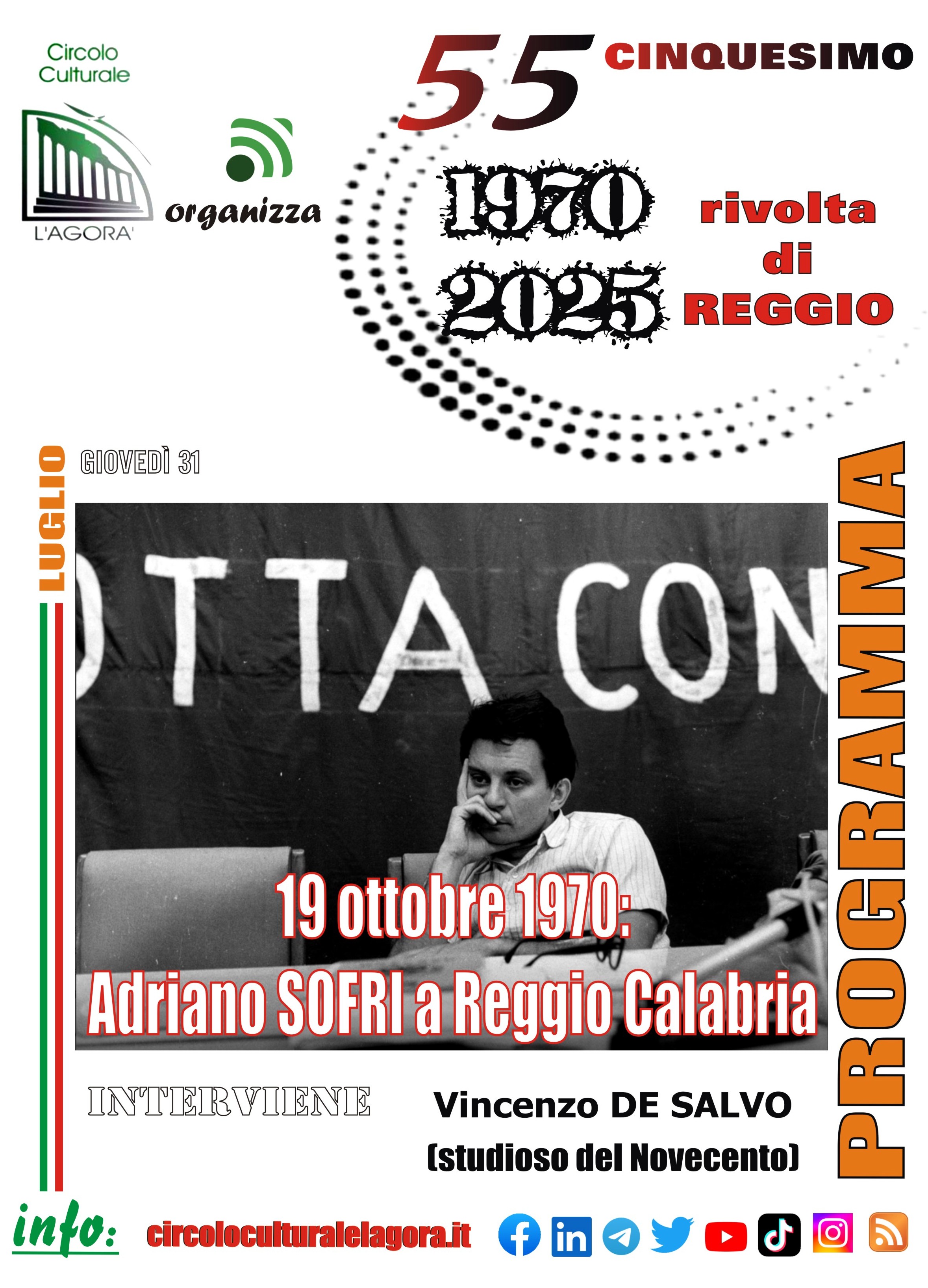 Si è svolta giovedì 31 luglio la conversazione organizzata dal Circolo Culturale “L’Agorà”, sul tema “19 ottobre 1970: Adriano Sofri a Reggio Calabria”. I fatti di Reggio furono un evento importantissimo legati al periodo storico italiano e non solo, la più grande rivolta spontanea e popolare d’Europa dopo la seconda guerra mondiale. Diversi sono gli accadimenti che si verificarono nella Città dello Stretto e che ancora su molti dei quali cala una fitta serie di interrogativi ancora irrisolti. Il 14 luglio del 1970, scoppiava in riva allo Stretto, nella parte più meridionale della Penisola italiana, la rivolta urbana più lunga del novecento nel vecchio continente europeo. Sono passati cinquantacinque anni da quel 14 luglio 1970, giorno in cui una città del profondo Sud, segnava il suo nome nella storia dei moti di protesta più significativi, per durata ed intensità della storia dell’Italia unita. Quel giorno iniziò la “Rivolta di Reggio”. Nel mese di ottobre 1970 la rivolta di Reggio Calabria raggiunse la sua fase più calda, quella che catalizzò l’attenzione nazionale: lo sciopero generale si estese all’intera provincia, con strade e linee ferroviarie bloccate, così come i porti di Reggio e Villa San Giovanni. Il 19 ottobre dello stesso anno, Adriano Sofri, leader di “Lotta Continua”, giunse a Reggio, dove tenne una conferenza stampa nella location dell’Hotel Excelsior, dove albergavano da mesi i tanti giornalisti inviati a Reggio per seguire i moti. In quella occasione si assistette, come riportato sia dalla cronaca del periodo che da alcuni saggi, ad un duro attacco dialettico di Adriano Sofri nei confronti di quei giornalisti che sostenevano a senso unico, sui loro giornali, la tesi di protesta reazionaria e fascista. In quell’occasione, il leader di Lotta Continua disse che “il più bel regalo che a Reggio poteva fare il PCI ai fascisti è stato quello di tenersi in disparte, di non capire la protesta”. Queste sono alcune delle cifre che sono state oggetto nel corso della conversazione sul tema “19 ottobre 1970: Adriano Sofri a Reggio Calabria”. Nel corso della nuova conversazione si è registrata la presenza dello studioso Vincenzo De Salvo. Adriano Sofri attaccò quei giornalisti che sostenevano a senso unico, sui loro giornali, la tesi di protesta reazionaria e fascista (Malafarina –Bruno-Strati «Buio a Reggio», Parallelo 38 Edizioni, 1971) “Nel Mezzogiorno – disse -chi non sta sulle barricate non ha diritto alla parola, non ha influenza sulle masse, non svolge alcun ruolo. La prova di quanto dico è Reggio, dove i fascisti sono dentro la rivolta perché ne hanno accettato sin dall’inizio il connotato fondamentale della violenza. Il più bel regalo che a Reggio poteva fare il PCI ai fascisti è stato quello di tenersi in disparte, di non capire la protesta, di lasciare che la massa inerme affrontasse la reazione armata(dello Stato). Piuttosto, dice Sofri, “in molte aree del Sud sarebbero mature le premesse di una rivoluzione proletaria contro il sistema e Reggio avrebbe dimostrato di poter esprimere a livello popolare una forza dirompente che le viene dall’inefficienza delle mediazioni sindacali e partitiche, dal rifiuto della politica clientelare” . Dice ancora Sofri: “Verrà affisso in tutta Italia un manifesto non con lo slogan- Reggio Capoluogo -bensì con quello di - Reggio capitale dei proletari in lotta. -Il capoluogo servirà da pretesto per uno scontro con lo Stato. Poi ci saranno manifestazioni in altre città, con l’appoggio degli studenti. Infine, un intervento preciso nei quartieri popolari di RC, dove i proletari hanno fame di una prospettiva e noi gliela daremo. Li spingeremo a non pagare più le tasse, a non accettare più le elezioni, a respingere i partiti, [...] a rifiutare il servizio militare. [...] Sono prevedibili mesi futuri di lotta dura e violenta”. La conferenza stampa durò tutta la notte e alle prime luci dell’alba Sofri se ne andò a dormire. In effetti, nei giorni successivi, diversi militanti di Lotta Continua rimasero a Reggio per verificare la reale valenza della lettura della Rivolta da parte del loro leader. Più di 30 anni dopo la rivolta, Adriano Sofri è tornato sull’argomento Reggio in una conversazione con Adele Cambria (Nove dimissioni e mezzo, Donzelli 2010) in cui disse di rimanere convinto che la sinistra storica fece un enorme regalo “a quel tipo di direzione dei fatti di Reggio, invocandone la repressione poliziesca e militare, ignorando per esempio che il primo morto della Rivolta, il ferroviere Bruno Labate, era di sinistra”.